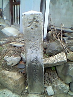 という訳で、生活道路沿いに建立されている丁石を見るため移動は歩きです。とりあえず「太子・和みの広場」に車をとめ、一路妹子塚へ。妹子本には丁石の場所を記した地図が載ってるんですが、これが結構アバウティーwな図なんですよ。それでも無事一つ目の丁石とご対面。感で進んでも迷わず目的地にたどり着ける能力を標準装備してくれた両親に