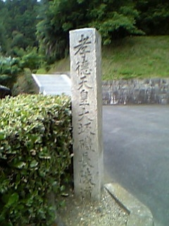 このまま竹内街道を歩いて「太子・和みの広場」まで帰ろうと思ってたので、街道沿いにある「孝徳天皇陵」にも立ち寄りました。写真には、「孝徳天皇大坂磯長陵道」と書いてあります。これで、梅鉢御陵で行ってないのは「敏達天皇陵」だけだな。