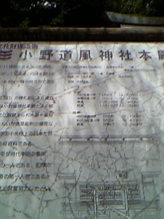 が付いた神社。小野篁は閻魔大王の補佐をしたことで有名。小野道風は平安時代の能書家で