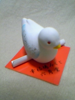 まずは有名な鳩みくじ。一つ一つ顔が違うので、どの子にしようか迷いました(どれも可愛いですよ~)。で、悩んで選んで連れて帰った子wは「大吉」でした\(^0^)/。