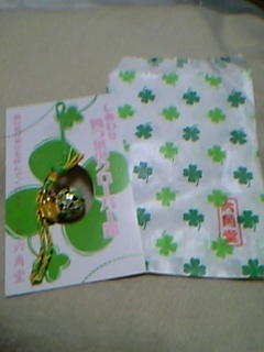 ちなみに、写真でも分かるようにお土産を入れてくれた袋もクローバー柄なんです(隅に「六角堂」と判こが押されてます)。やっぱり何か関係があるんでしょうか??